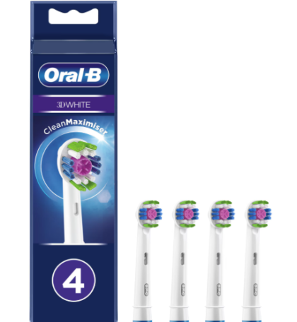Acest pachet conține 4 rezerve originale Oral-B 3D White, special concepute pentru periuțele de dinți electrice Oral-B. Fiecare cap de periuță este echipat cu o cupă de lustruire unică, inspirată de instrumentele dentare profesionale, destinată să îndepărteze eficient petele de suprafață și să reveleze un zâmbet vizibil mai alb. Alături de perii săi specializați, rezervele 3D White oferă o curățare superioară și o senzație de prospețime, contribuind la menținerea unei igiene orale optime și la o dantură strălucitoare. Sunt ușor de instalat și compatibile cu o gamă largă de mânere de periuțe electrice Oral-B, cu excepția modelelor Pulsonic și iO.